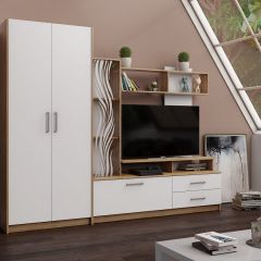 ДАРЬЯ Гостиная (Дуб вотан/Белый глянец) модульная