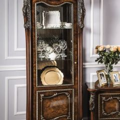Фасад имеет уникальное сочетание глубокого тиснения и эффекта патины, присущей классическому стилю. Изящество зеркал и зеркальных дверей шкафов подчеркивает фацет.